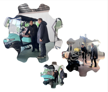 在绿友新能源工厂,客户深入参观了电动高尔夫球车的自动化生产线、研发中心及成品展示区,详细了解各类电动车辆的生产工艺、核心技术及质量控制体系。客户对绿友工厂的现代化制造水平、环保理念及产品性能给予高度评价,尤其对炫酷的前后罩外形设计、铝合金车架焊接工艺、动力强劲的电控系统,以及十寸屏幕和带灯一键启动等外观设计表现出浓厚兴趣。