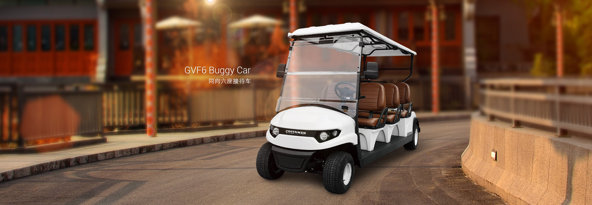 六座接待车性能稳定、操控轻便, 实用于高尔夫球场、大型游乐园、高档酒店等。