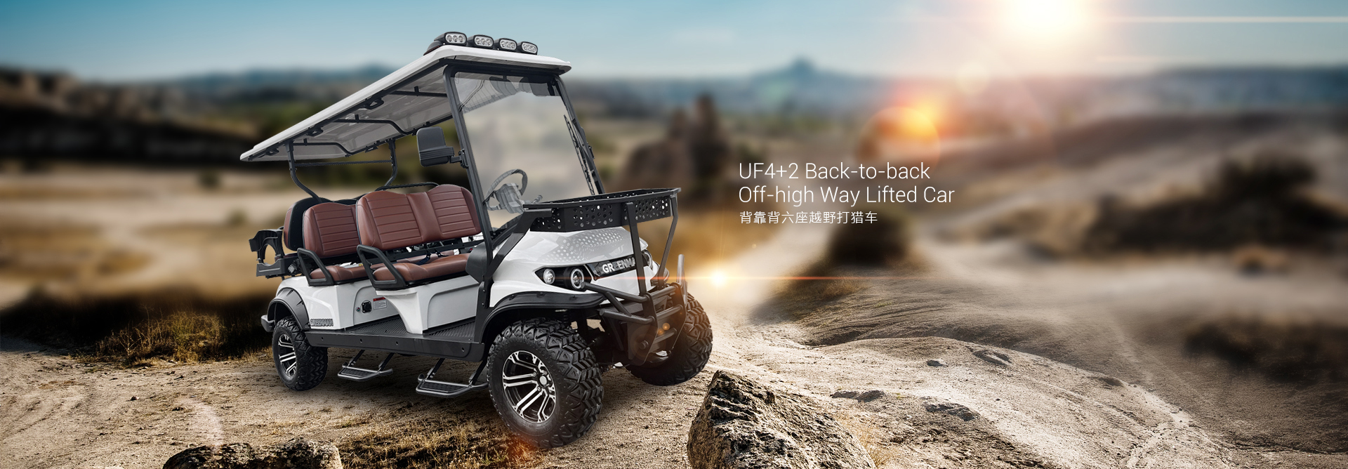配备大功率电机和大容量电池,采用铝合金大尺寸越野轮胎, 四轮液压碟刹+电子驻车。车辆底盘高、动力足、安全性高,具备非同一般的驾乘感。 广泛应用于高尔夫社区、郊野、休闲度假酒店、大型农场工作。