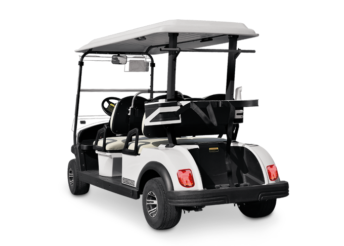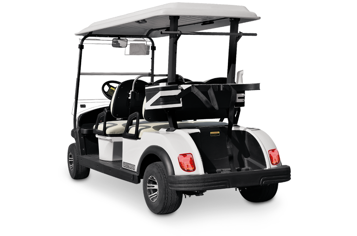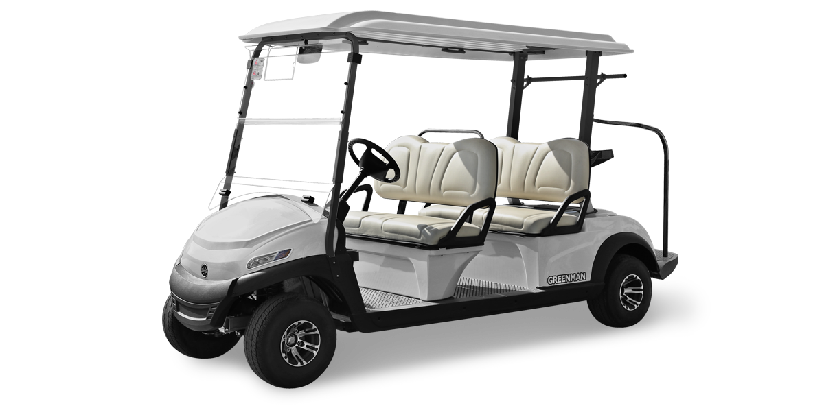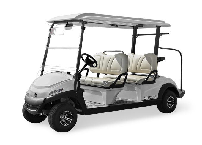 同向四座高尔夫球车,可以供4名球手和2名球童同时驾乘,也可以供3名球手和3名球童同时驾乘。 本车秉承GREENMAN 电动车一贯的优雅、高端的理念,造型美观大方; 2500mm超大轴距、舒适的豪华座椅、充分考虑人机工程学的靠背和扶手设计,